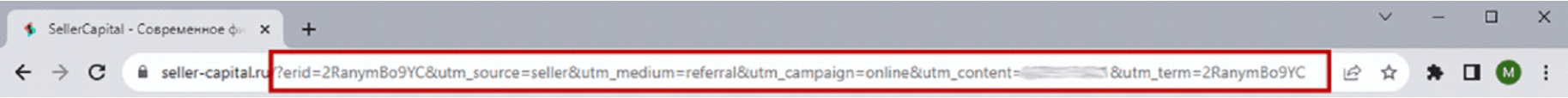 - Скопируйте реферальную ссылку с маркером и вашим промокодом. Проверьте, ссылка должна содержать надпись "?erid="